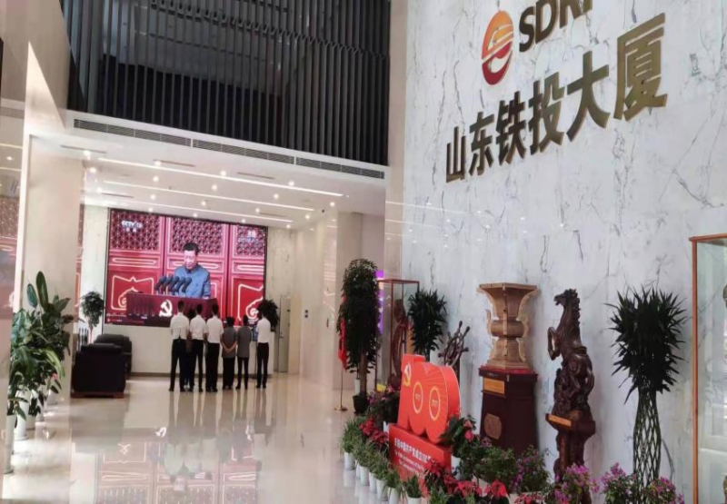鐵航物業(yè)公司員工在山東鐵投大廈一樓大廳收看大會