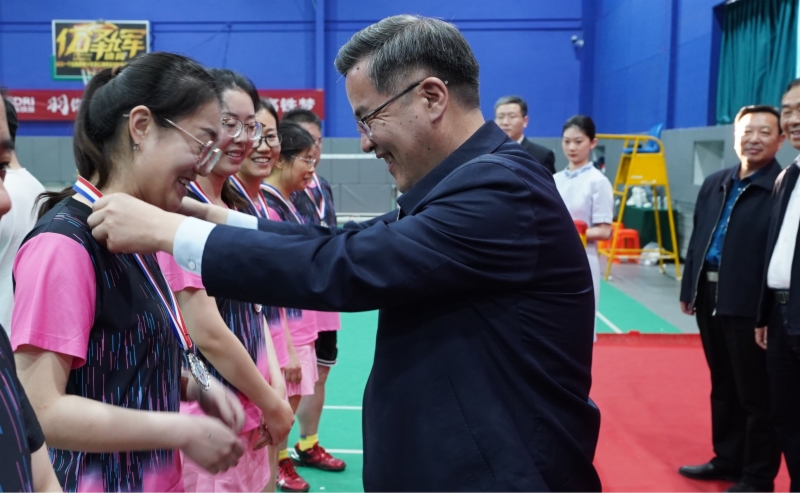 高燕在閉幕式上講話,向取得優(yōu)異成績的代表隊(duì)表示祝賀,向所有運(yùn)動(dòng)員的奮勇拼搏、裁判員的公正評判、大賽組委會(huì)的精心組織、籌備組工作人員的默默奉獻(xiàn)表示贊揚(yáng)和慰問。她強(qiáng)調(diào),本屆羽毛球比賽是今年集團(tuán)舉辦的第一場大型群眾性文體活動(dòng),各代表隊(duì)在比賽期間充分發(fā)揚(yáng)“頑強(qiáng)拼搏、團(tuán)結(jié)協(xié)作”的運(yùn)動(dòng)精神,賽出了水平,更賽出了風(fēng)格,充分展示了鐵投人朝氣蓬勃、昂揚(yáng)向上的精神風(fēng)貌。希望大家在今后的工作和生活中,繼續(xù)發(fā)揚(yáng)拼搏精神,以飽滿的熱情、昂揚(yáng)的斗志,為集團(tuán)高質(zhì)量發(fā)展努力奮斗!隨后,高燕、竇玉碩等領(lǐng)導(dǎo)向各代表隊(duì)頒發(fā)了獎(jiǎng)牌和獎(jiǎng)杯,并與大家合影留念。