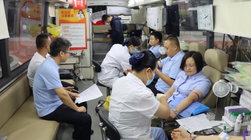 盛暑初伏,氣溫高、濕氣重,恰逢周一,工作繁忙,但獻(xiàn)血登記處還是排起了長隊(duì),大家在省血液中心工作人員的指引下,依次完成信息登記、測量血壓、化驗(yàn)、采血全過程?,F(xiàn)場氣氛熱烈,場面感人,有的同志在開會間隙“見縫插針”到場匆匆忙忙離去,有的同志身上還掛著行李馬上準(zhǔn)備出差,有的同志一邊登記檢查一邊還打著電話對接工作,還有高鐵建設(shè)一線指揮部的同志們專程驅(qū)車幾個小時來回……涓涓熱血緩緩流動,將鐵投干部職工的愛心匯聚成感恩社會、守護(hù)他人的股股暖流。