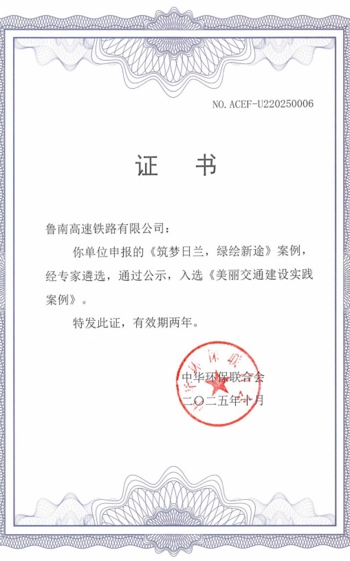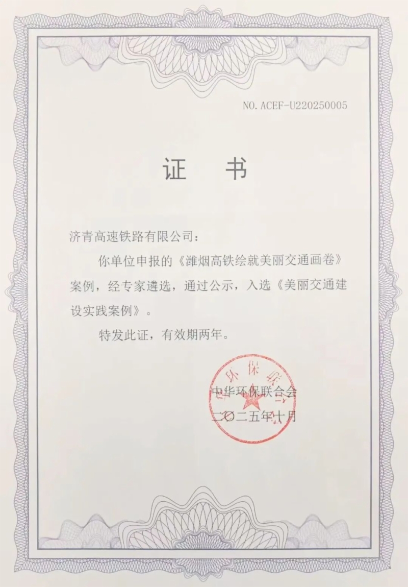▲日蘭高鐵、濰煙高鐵“美麗交通建設(shè)實(shí)踐案例”證書