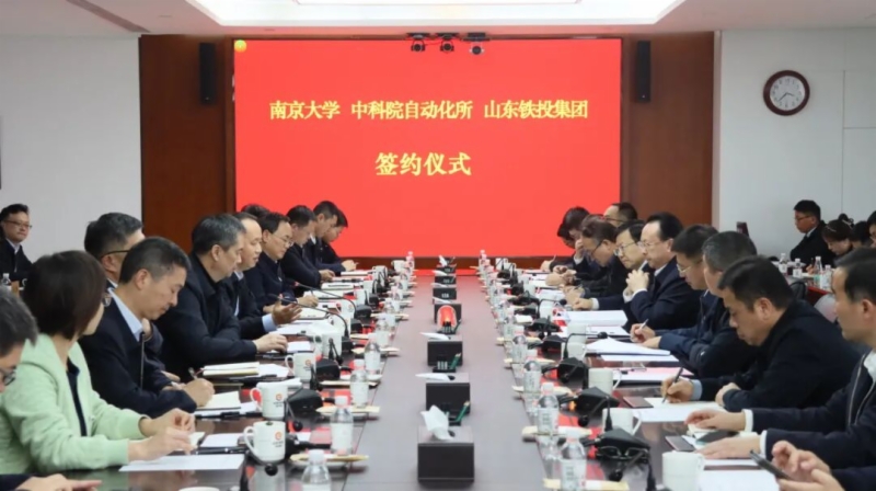 11月8日下午,山東鐵投集團與南京大學、中科院自動化研究所在集團總部大樓簽署合作協(xié)議并座談交流。南京大學黨委書記、中國科學院院士譚鐵牛,黨委常委、校長助理、學校辦公室主任李斌,山東省科技廳黨組成員、省創(chuàng)新發(fā)展研究院黨組書記、院長劉峰,中科院自動化研究所黨委委員、副所長呂品,山東鐵投集團黨委書記、董事長王衛(wèi)中,黨委副書記、總經(jīng)理高立平,黨委委員、副總經(jīng)理楊俊泉、趙春雷出席活動。集團黨委副書記樂江華主持。