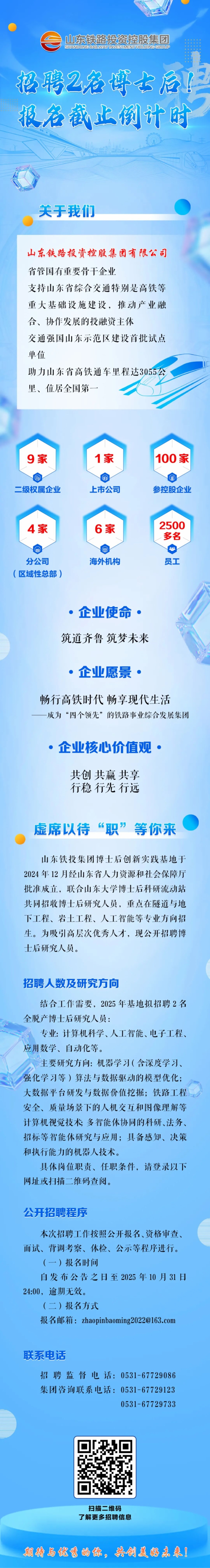 本月底報(bào)名截止!山東鐵投集團(tuán)招聘2名博士后研究人員