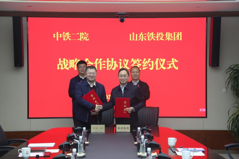 12月24日下午,山東鐵投集團(tuán)與中鐵二院在集團(tuán)總部大樓簽署戰(zhàn)略合作協(xié)議。中鐵二院黨委書記、董事長杜建軍,山東鐵投集團(tuán)黨委書記、董事長王衛(wèi)中出席并見證簽約。中鐵二院黨委常委、副總經(jīng)理梁春祥,山東鐵投集團(tuán)黨委委員、副總經(jīng)理楊俊泉代表雙方簽約。