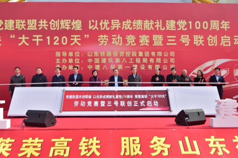 近日,濟(jì)青高鐵公司、威海市發(fā)改委、乳山市發(fā)改局、南海新區(qū)經(jīng)發(fā)局、文登區(qū)發(fā)改局,以及中建八局一公司萊榮高鐵項(xiàng)目部,在萊榮高鐵開展“黨建聯(lián)建共創(chuàng)輝煌 以優(yōu)異成績獻(xiàn)禮建黨100周年”勞動(dòng)競賽暨“三號(hào)”(黨員先鋒號(hào)、工人先鋒號(hào)、青年文明號(hào))聯(lián)創(chuàng)、黨建聯(lián)盟啟動(dòng)儀式,結(jié)合日前開展的“大干120天,喜迎建黨100周年”勞動(dòng)競賽,萊榮高鐵建設(shè)按下“加速”鍵。
