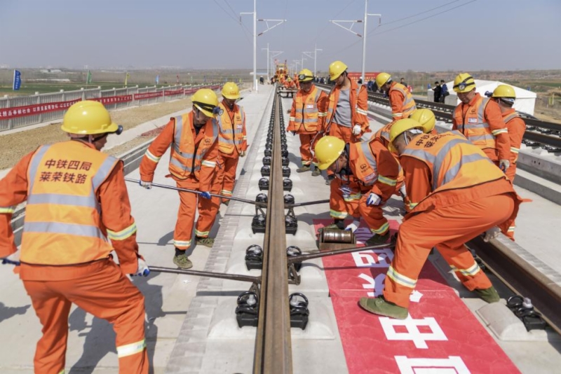 萊榮高鐵正線長度 192.814km,其中鋪設(shè)無砟軌道地段 180.999km。自2022年3月下旬無砟軌道工程全面轉(zhuǎn)入線上施工以來,萊榮高鐵公司充分發(fā)揮黨建引領(lǐng)作用,精心組織,細(xì)化安排,充分優(yōu)化資源配置,全線高峰時(shí)段38個(gè)作業(yè)面同時(shí)施工,作業(yè)人員高達(dá)1500余人。各參建單位齊心協(xié)力克服了工作面多、作業(yè)班組多、施工組織難度大、不良天氣頻發(fā)和疫情防控等不利因素影響,僅用不足400天時(shí)間順利完成全線無砟軌道施工任務(wù)。目前萊榮高鐵鋪軌已完成近半,計(jì)劃6月初完成鋼軌放散鎖定,7月初開始聯(lián)調(diào)聯(lián)試,10月底具備開通運(yùn)營條件。