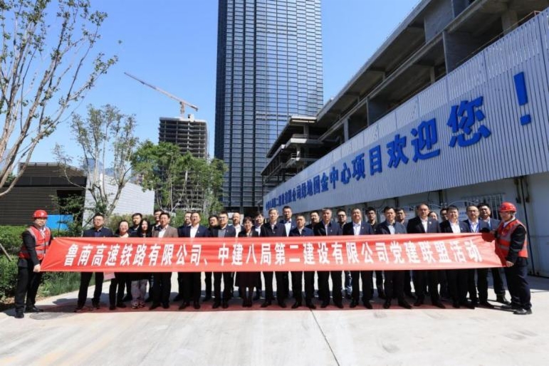 4月26日,魯南高鐵公司組織黨員來到綠地山東國際金融中心項(xiàng)目建設(shè)現(xiàn)場(chǎng),與中建八局二公司共同開展了黨建共建暨“登齊魯之巔,懷赤色匠心,做魯南尖兵”主題黨日活動(dòng)。魯南高鐵公司黨委副書記、總經(jīng)理孫韶峰,黨委副書記、監(jiān)事會(huì)主席、工會(huì)主席王清村;中建八局山東分局副局長(zhǎng)靳慶玉,二公司副總經(jīng)理苑玉振,黨委副書記、工會(huì)主席張慧,基礎(chǔ)設(shè)施公司黨總支書記、總經(jīng)理呂士東,山東公司黨總支副書記、執(zhí)行總經(jīng)理高騰等參加活動(dòng)。