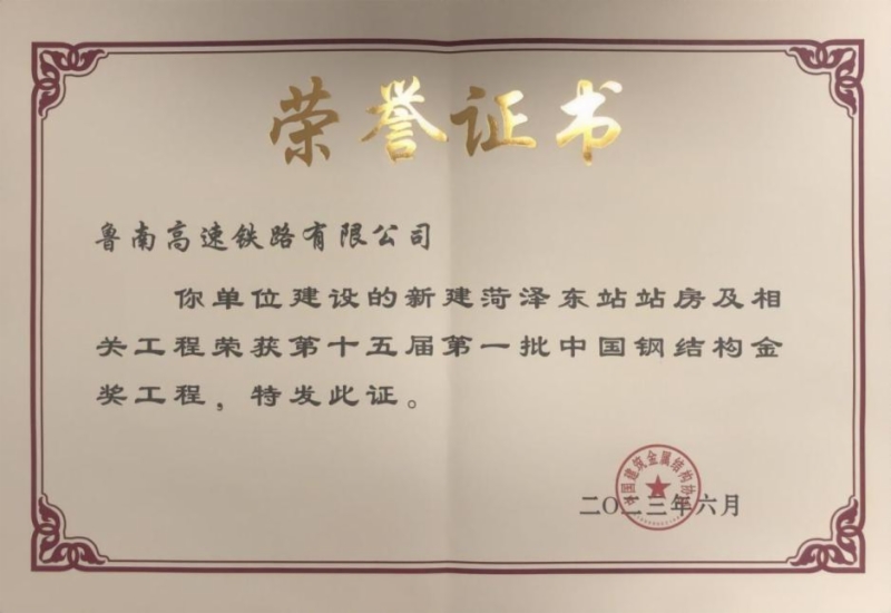 近日,魯南高鐵菏澤東站,榮獲“第十五屆第一批中國鋼結(jié)構(gòu)金獎(jiǎng)”。