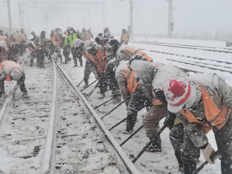 本次施工蓬萊市站拆除道岔1組,拆除線路160m,恢復線路34m。自本月18日組織拆除道岔施工以來,煙臺地區(qū)連降大雪,氣溫驟降,濰煙高鐵公司精心組織,各參建單位緊密配合,戰(zhàn)風雪、斗嚴寒,發(fā)揮“風暴強意志更強,再艱苦不怕吃苦”的精神,同心戮力,順利完成了此次道岔拆除Ⅲ級施工任務。整個施工過程安全穩(wěn)定、組織得力,為今后面對惡劣天氣實施站改施工積累了寶貴經(jīng)驗,也為濰煙高鐵全線勇保兌現(xiàn)營業(yè)線施工天窗起到表率作用。