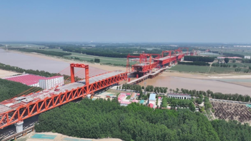 截至5月中旬,濟(jì)濱高鐵控制性工程濟(jì)陽(yáng)黃河公鐵兩用特大橋4座主塔已施工完成,鋼梁總計(jì)架設(shè)完成3.92萬(wàn)噸,斜拉索總計(jì)安裝完成112根,主橋總體進(jìn)度近80%。全線三電及管線遷改完成95%、路基完成45%、橋梁完成66%、隧道完成57%。